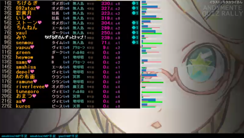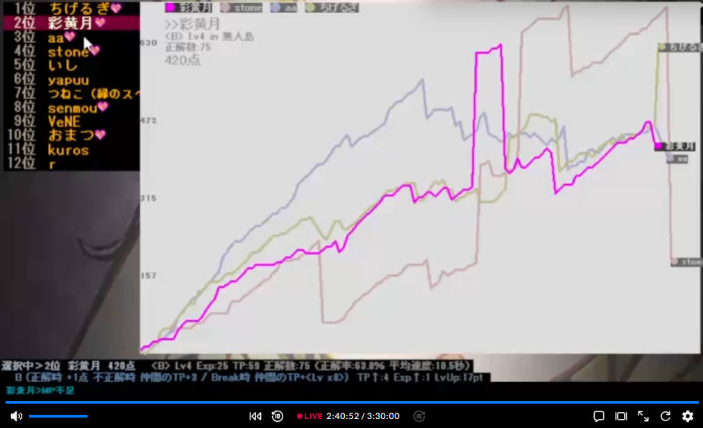 総合得点3位、回答速度3位、正解数同率1位!やったー!