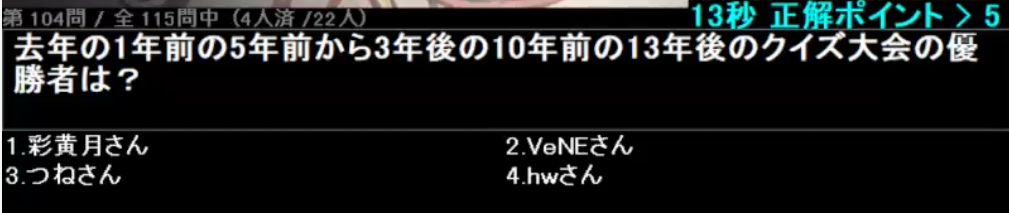 冒頭の歴代優勝者紹介に名を連ねたり、ついにクイズの選択肢にまで登場してしまいましたよ