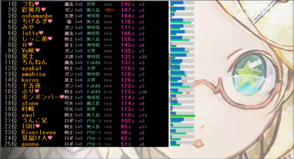 無人島ガンマンで出場し、瞬間最高順位は2位、最終順位は25人中10位でした!!!